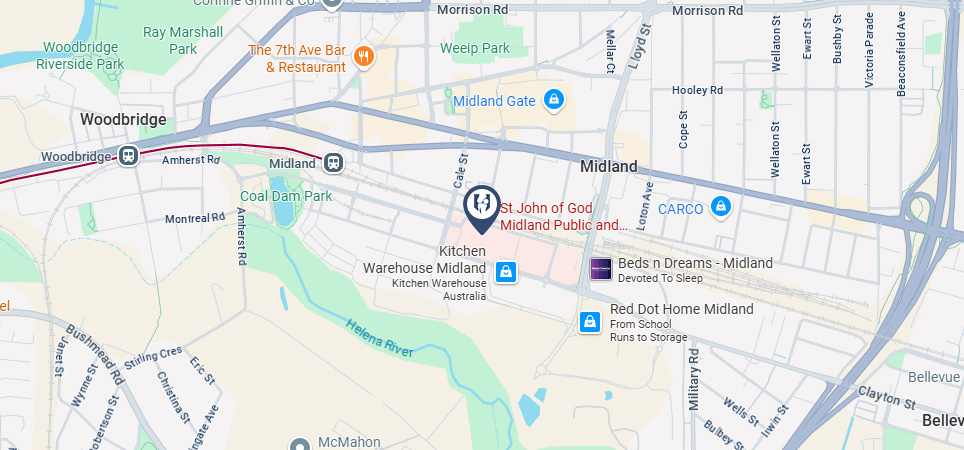 - St John of God Midland Hospital, 1 Clayton St, Midland WA 6056 Click to view on Google Maps